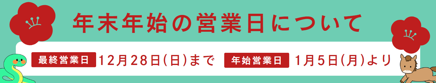 年内は12月28日18時30分をもちまして業務を終了する予定でございます。